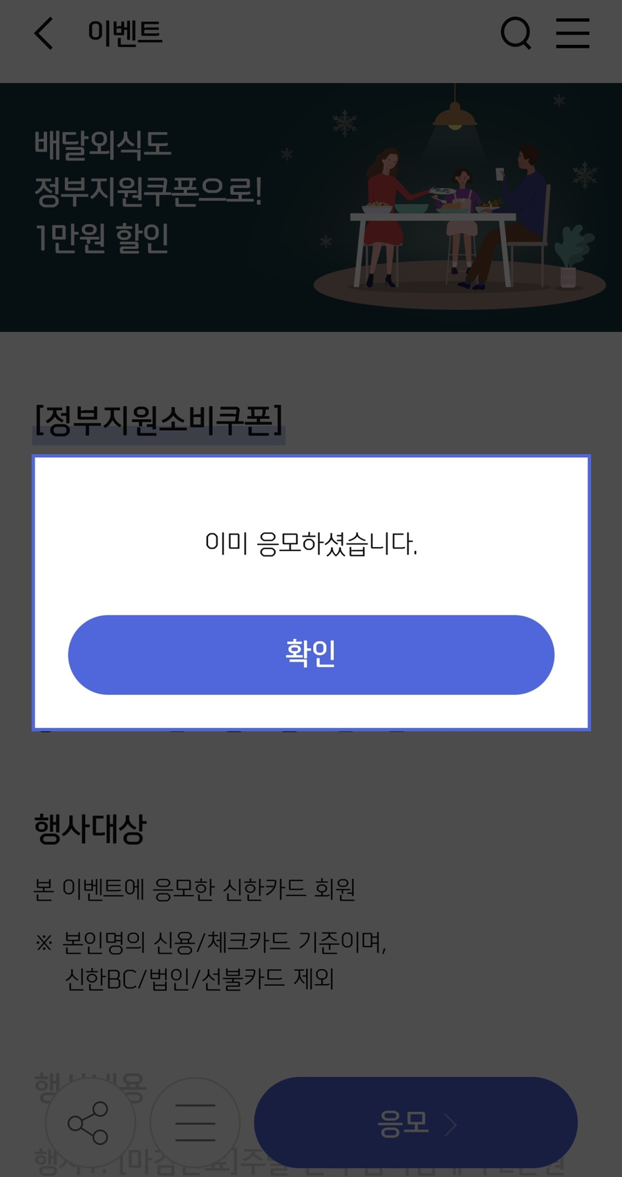 정부 지원 외식 쿠폰 배달앱 이벤트 응모는 끝이에요
