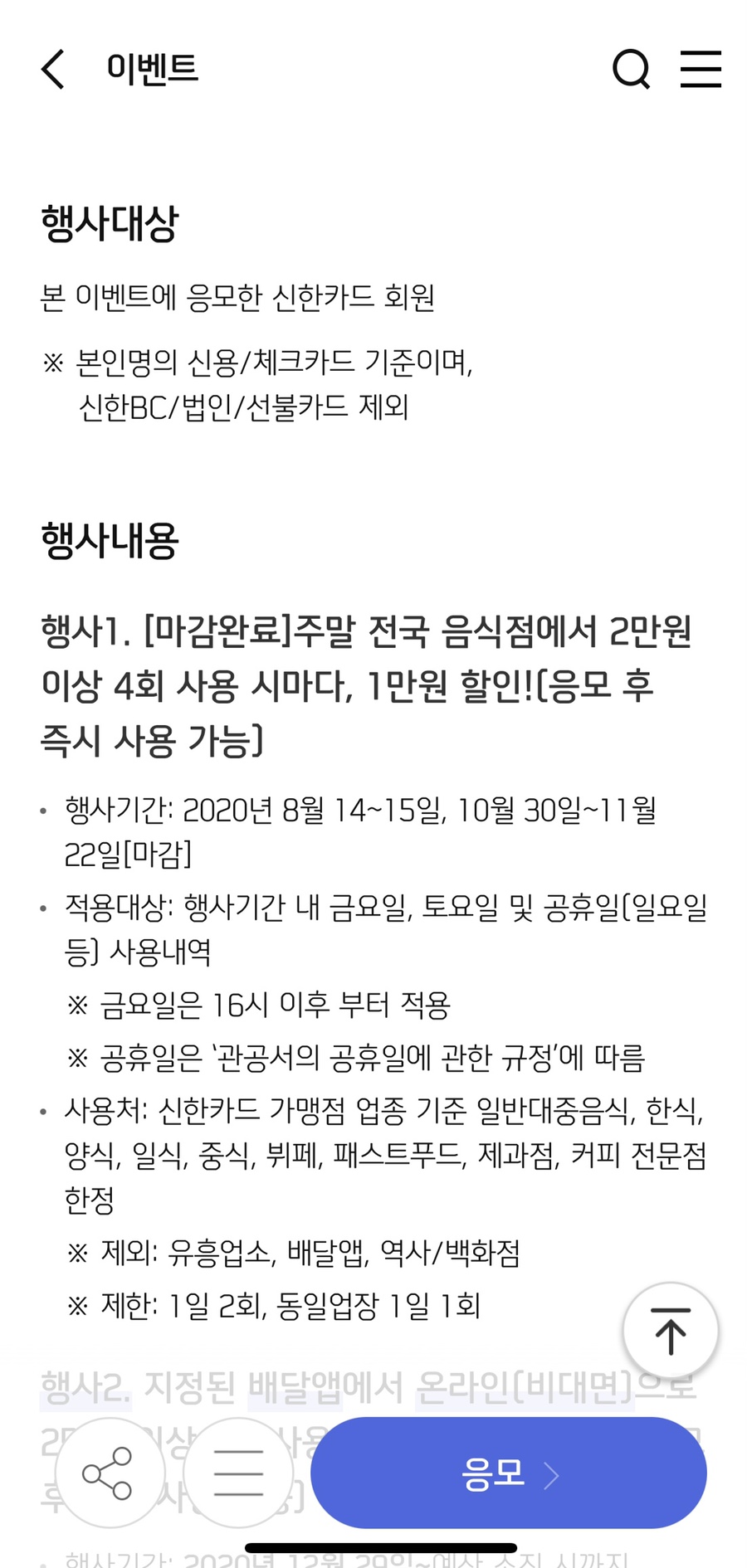 카드사 홈페이지 및 앱을 이용하여 꼭 이벤트 응모하시고